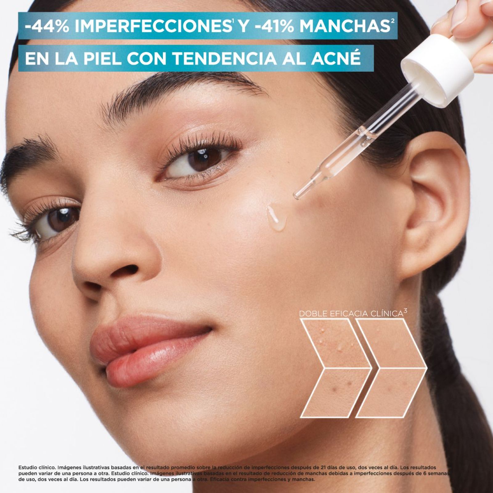 Nuevo Sérum Anti Imperfecciones para piel con tendencia al acné o para pieles mixtas con tendencia oleosa. Apto para pieles sensibles. Tratamiento concentrado formulado con Ácido Salicílico, Vitamina C°, AHA, y Niacinamida para tratar imperfecciones y manchas. Reduce -44% imperfecciones* y -41% visibilidad de manchas**. Textura ligera, sin sensación grasosa.