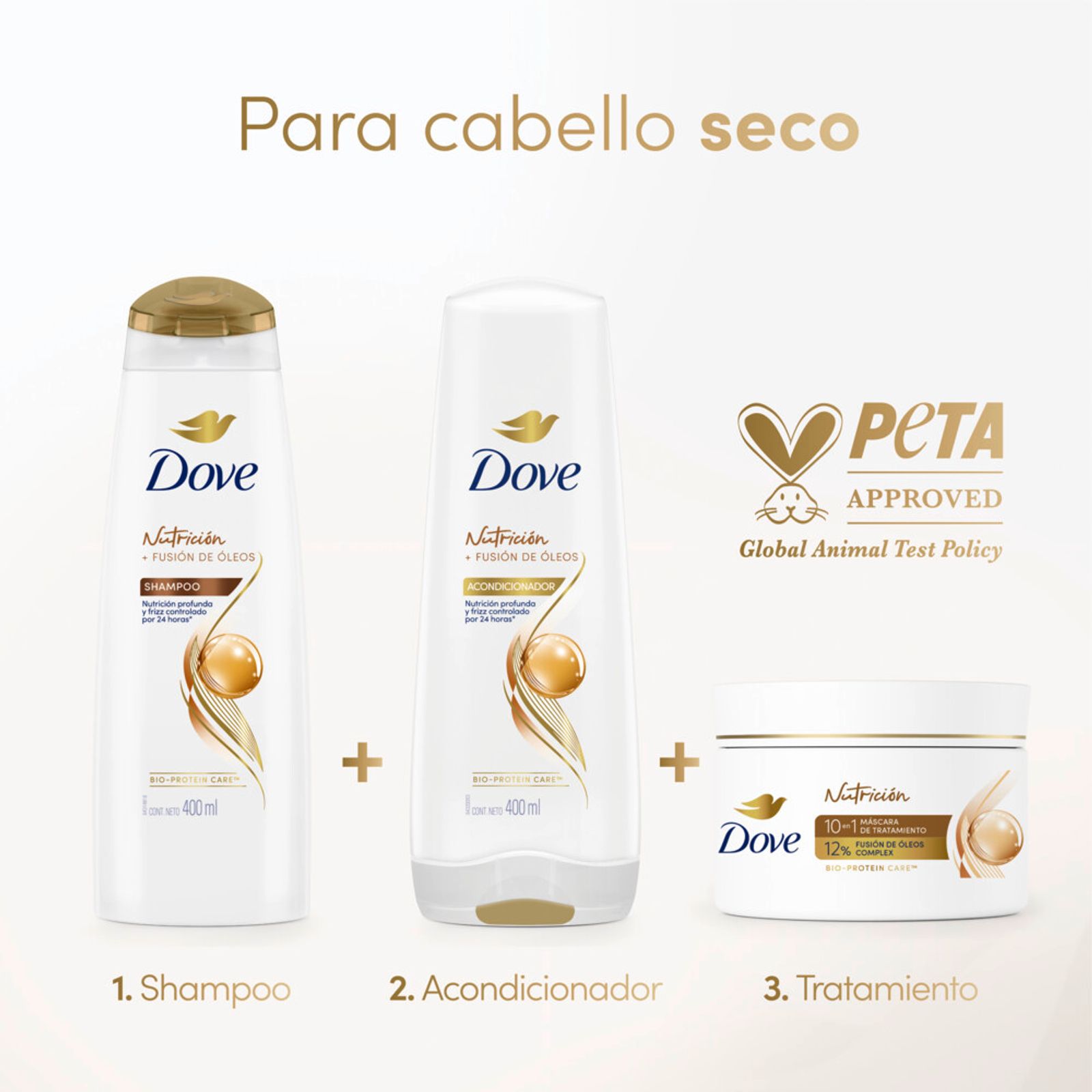 Disfruta de un pelo sedoso con el shampoo Dove, que ayuda a suavizar hasta un 100% el cabello áspero y controla el frizz.