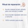 Ritual de Reparación es un shampoo nutritivo con aceite de coco y cúrcuma. Ayuda a conseguir un cabello más fuerte y resistente a los daños y a los quiebres. Deja tu cabello nutrido y con suavidad. El tratamiento capilar que hidrata y fortalece desde la raíz hasta las puntas. Le brinda a tu cabello un brillo superior y ayuda a reducir el frizz. Repara visiblemente los signos superficiales del desgaste, daños, puntas abiertas y pelo teñido.
