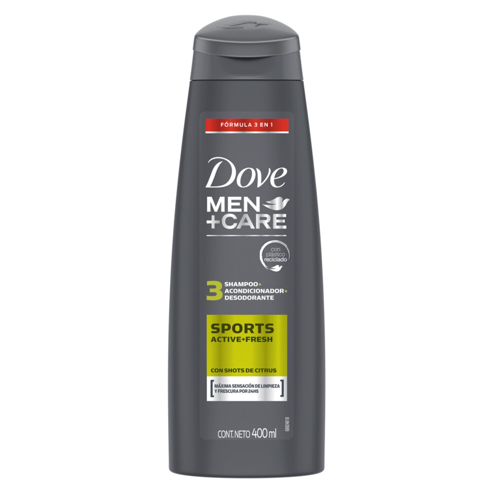Dove Men + Care celebra una nueva definición de fortaleza: la que se concentra en el cuidado. En Dove Men + Care creemos que el cuidado hace al hombre más fuerte y la verdadera fortaleza se demuestra a través del cuidado que le brindamos hacia los demás y hacia uno mismo. Ya sea que estés buscando un desodorante para sentirte seco y protegido todo el día o un shampoo para fortalecer el pelo, los productos Dove Men + Care están diseñados para proteger y cuidar tu piel y tu pelo. Shampoo 3en1 Dove Men+Care Sports (400 ml) ofrece máxima sensación de limpieza y frescura por 24 horas. Limpia profundamente y deja el cabello más fuerte y resistente, especialmente para aquellos hombres con un estilo de vida más activo. En su fórmula posee shots de citrus, lo que hace que se elimine la suciedad y la grasa con el lavado, proporcionando un efecto refrescante. Está nueva e innovadora fórmula 3-en-1: shampoo + acondicionador + desodorante fue diseñado específicamente para los hombres para su uso diario. La clave para un cabello que luzca genial es elegir los productos que se adecuan a tu tipo de cabello. Tiene sentido: trabajar con las necesidades específicas de tu cabello es la clave para mantenerlo resiliente y saludable . Con Dove encontrarás la manera de asegurarte que tengas los productos para el cuidado del cabello de los hombres que necesitas. Explora nuestros productos champúes masculinos Dove: MEN+CARE Shampoo Limpieza Refrescante, MEN+CARE Shampoo Caspa Control y MEN+CARE Shampoo 2en1.