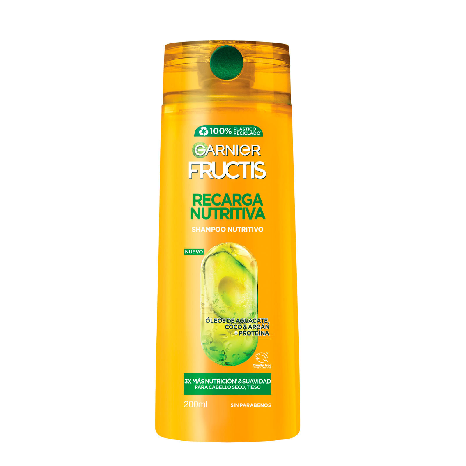 Garnier, comprometido con Green Beauty, usa botellas con plástico 100% reciclado para Shampoo y Acondicionador (excluyendo tapa, colorantes, aditivos y etiqueta).