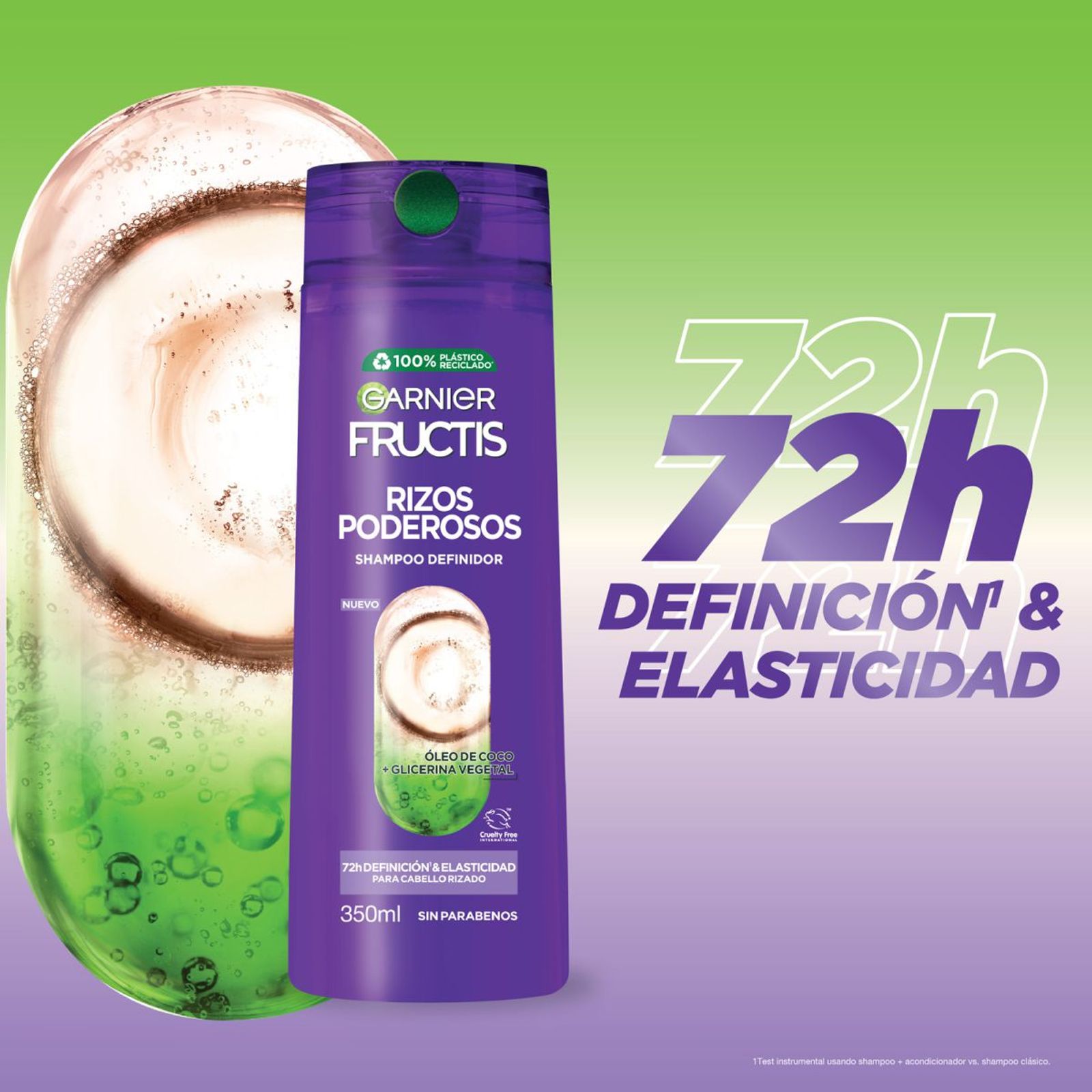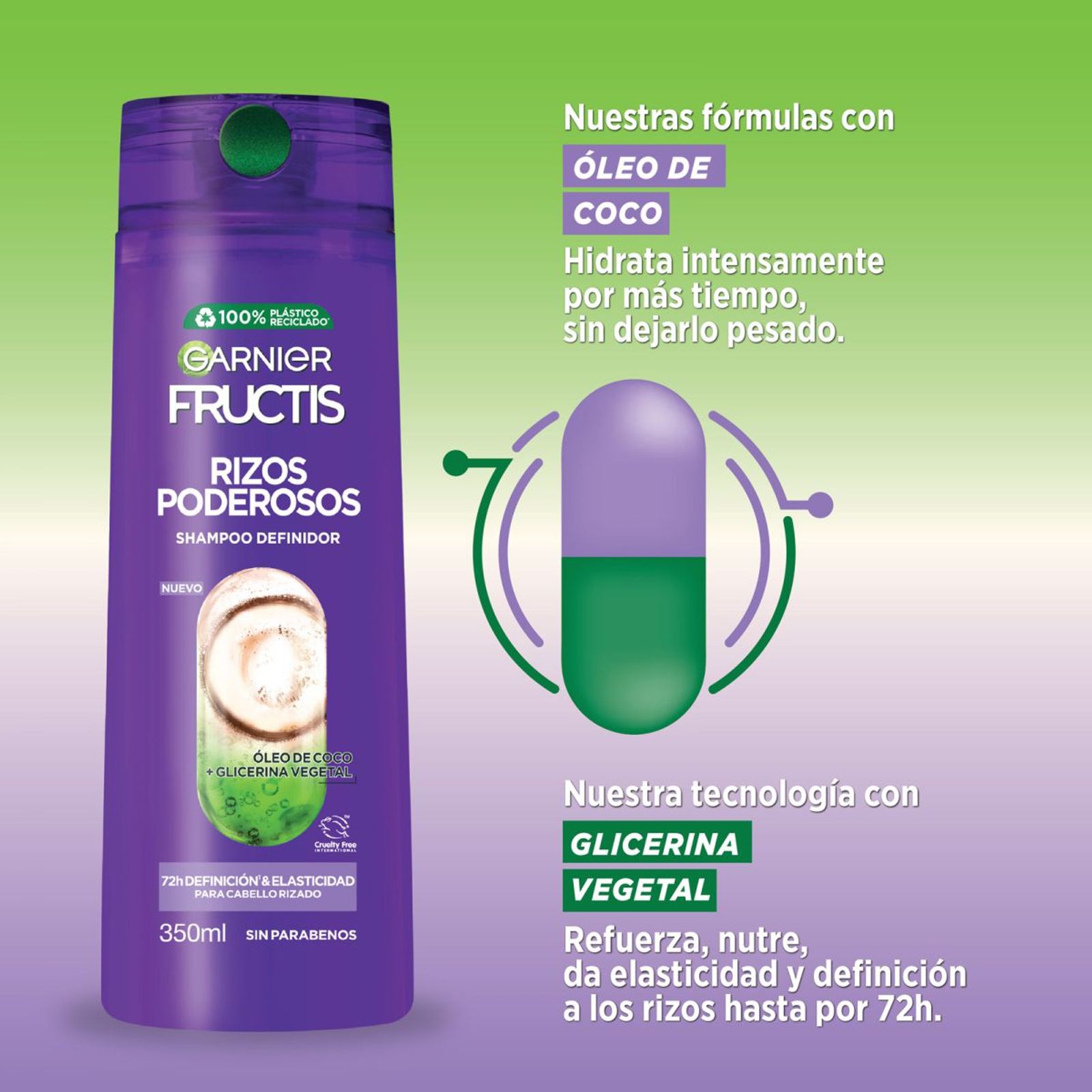 Garnier, comprometido con Green Beauty, usa botellas con plástico 100% reciclado para Shampoo y Acondicionador (excluyendo tapa, colorantes, aditivos y etiqueta).