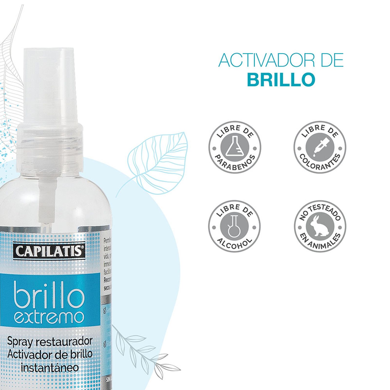 El Spray Activador de Brillo Instantáneo permite que la luz se refleje con mayor intensidad y que el cabello cobre nueva vida. Se deposita con gran afinidad sobre cada hebra capilar, formando una película protectora y generando un extraordinario brillo inmediato. Su fórmula, enriquecida con Semillas de Lino, nutre, acondiciona y suaviza, facilitando e iluminando el peinado. – SIN ALCOHOL. – SIN PARABENOS. – SIN COLORANTES. Modo de Uso: Vaporizar sobre el cabello seco una vez finalizado el peinado. No aplicar directamente sobre el cuero cabelludo ni en cantidades excesivas. – Semillas de Lino: confieren al cabello nutrientes esenciales que reparan las zonas dañadas de cada fibra capilar, lo que permite acentuar el brillo y lucir un cabello con el aspecto de la seda. – Siloxanos: actúan sellando las escamas de la cutícula, comportándose como un film protector para cada cabello. Son los responsables de brindar máxima suavidad, amplificar el efecto brillo y garantizar un baño de luz perdurable. CYCLOMETHICONE – PHENYL TRIMETHICONE ? AMODIMETHICONE – LINUM USITATISSIMUM SEED EXTRACT ? PARFUM (BUTYLPHENYL METHYLPROPIONAL ? CITRONELLOL – HEXYL CINNAMAL – LINALOOL)