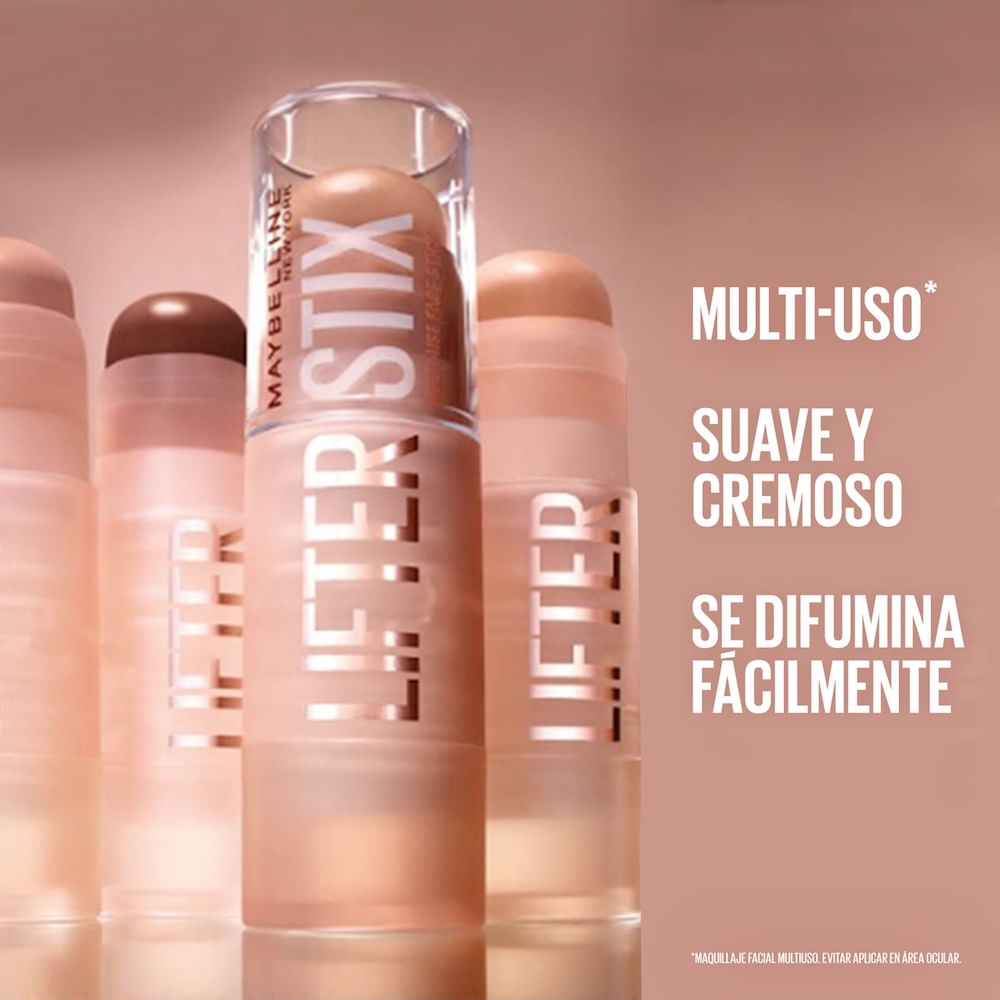 ¡Conocé los nuevos sticks faciales multi-uso* Lifter Stix de Maybelline! Lográ un efecto lifting al instante** con el stick que lo hace todo: ¡Cubre, contornea e ilumina! Con su fórmula que se desliza suavemente, sin dejar sensación reseca, lográ un look esculpido con una cobertura natural.