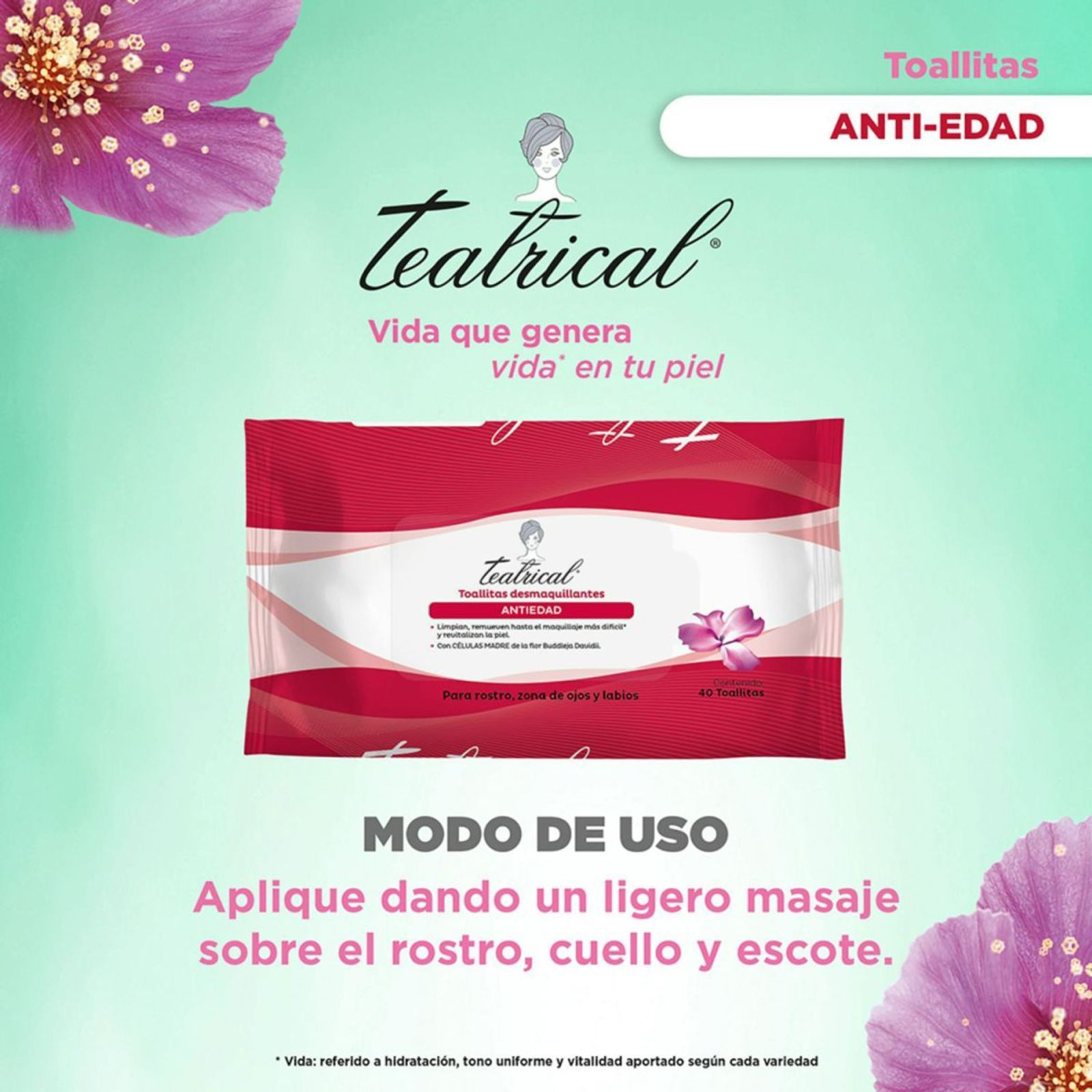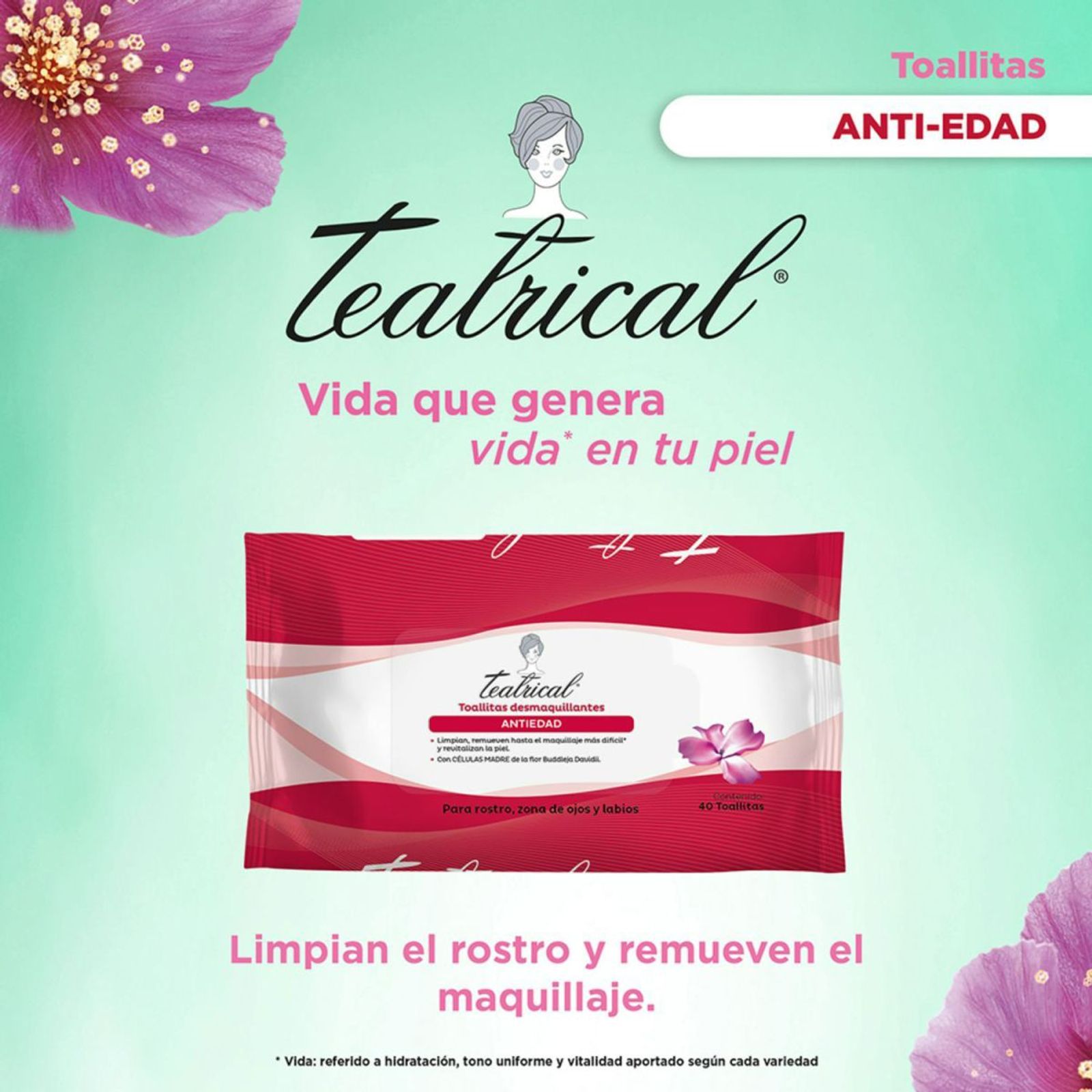 Toallitas desmaquillantes antiedad, limpian y remueven hasta el maquillaje más difícil, revitalizando la piel. Con células madre de la flor Buddleja Davidii. Para rostro, zona de ojos y labios BENEFICIOS – LIMPIEZA: Limpian el rostro – DESMAQUILLANTE: Remueve el maquillaje más difícil – CÉLULAS MADRE: De la flor Buddleja Davidii – ANTIEDAD MODO DE USO: Para rostro, zona de ojos y labios