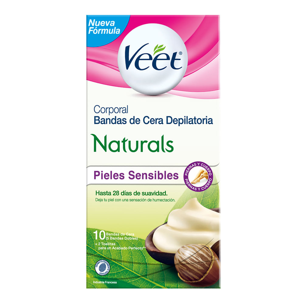 Veet® bandas depilatorias corporales para piel sensible eliminan el vello desde la raíz.