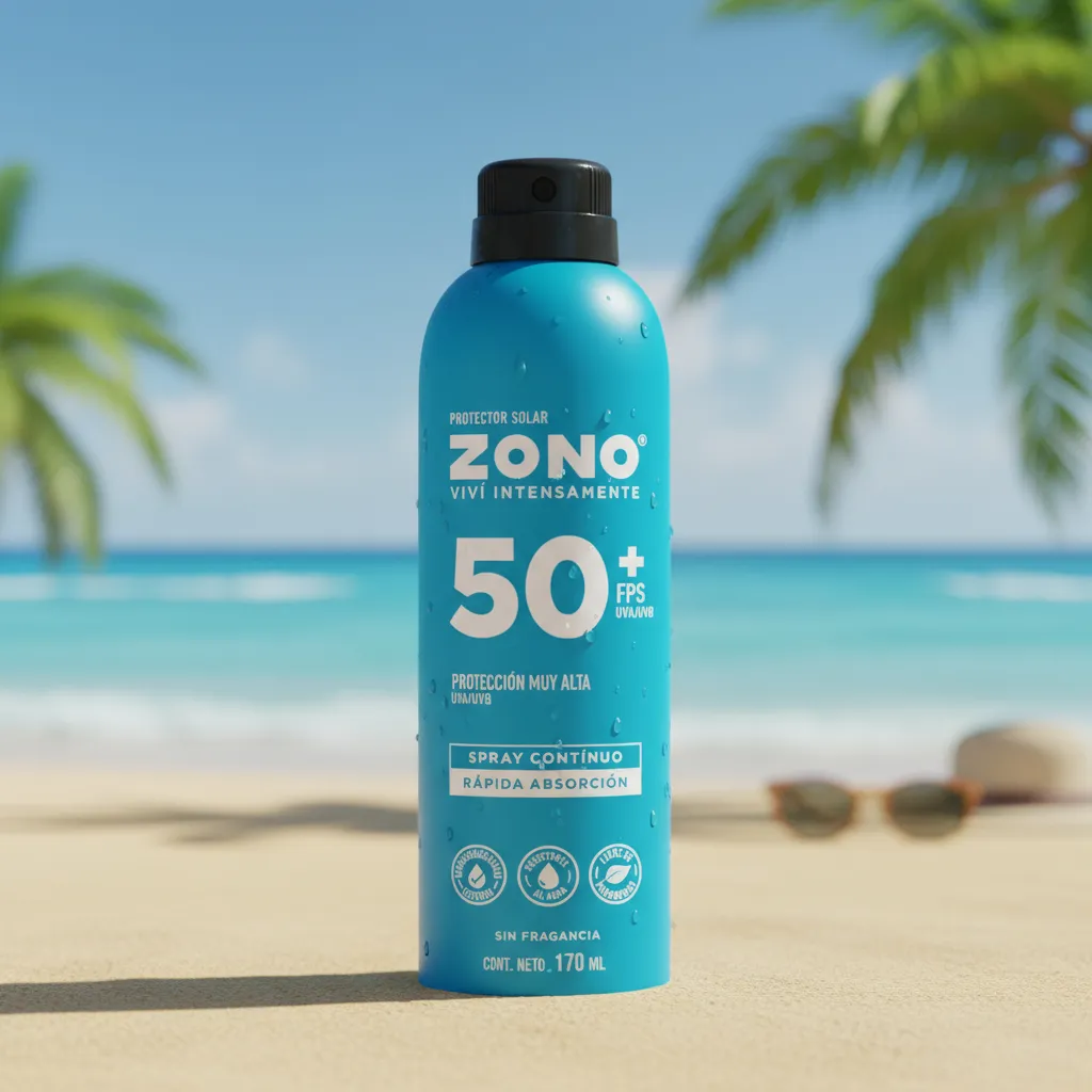 PROTECTOR SOLAR ZONO SPRAY FPS 50+ 170ml te protege eficazmente contra rayos UVA, UVB y luz azul. Su formato spray permite una aplicación rápida y cómoda, con rápida absorción y efecto seco que no deja sensación oleosa. Es resistente al agua, sin fragancia y libre de parabenos. Además, es apto para celíacos y no testea en animales, cuidando tu piel y el medio ambiente. Características clave: Protección amplia contra rayos UVA, UVB y luz azul. Aplicación rápida y efecto seco. Alta resistencia al agua. Sin fragancia ni parabenos. Apto celíacos y libre de crueldad animal. Viví el sol con la confianza que te brinda ZONO.
